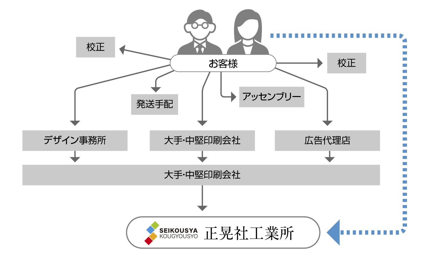 加工会社様へ刷り本をそのまま(別料金)、あるいは業者様への引き渡しも行っております。