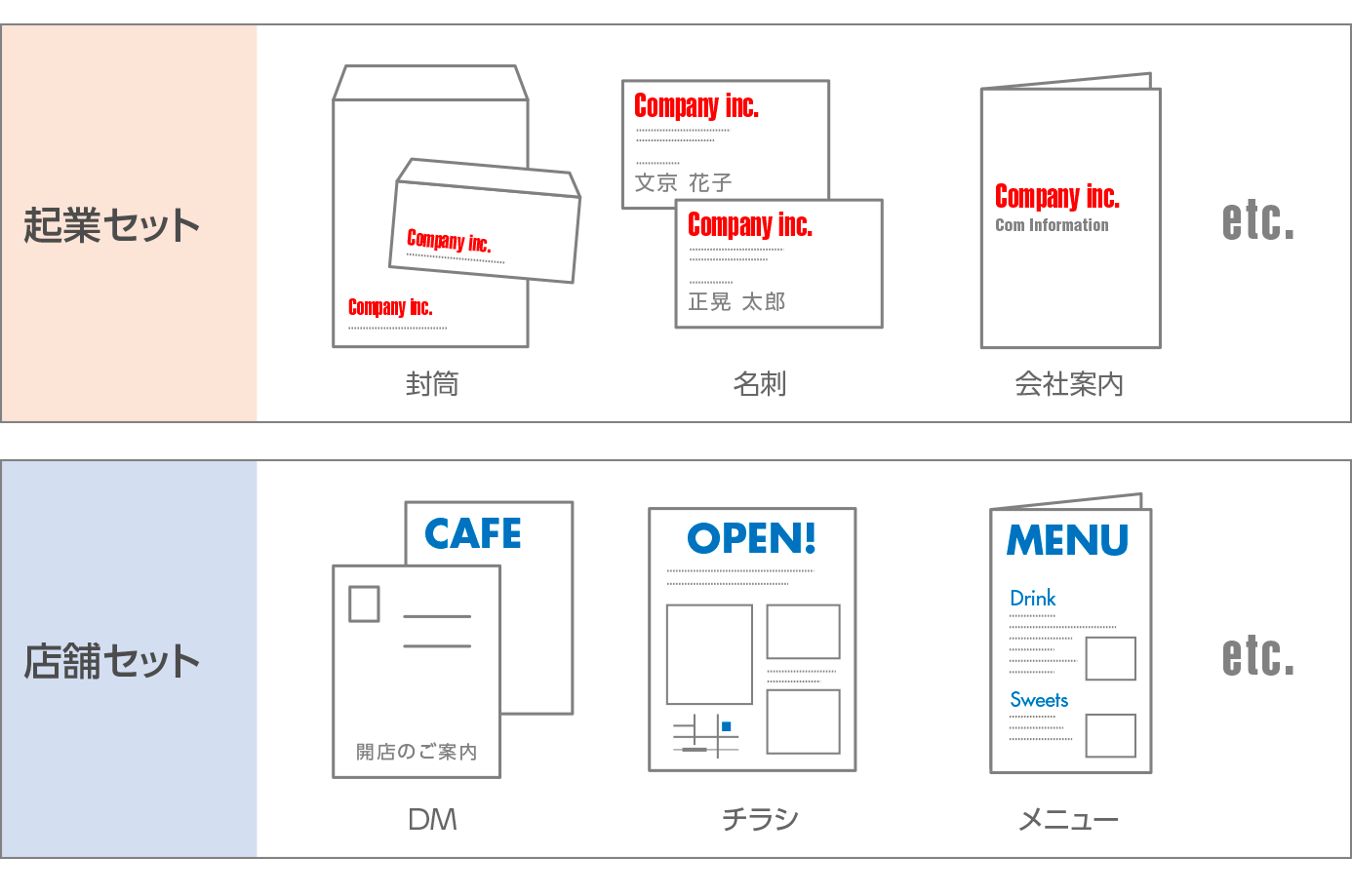 複数の営業ツールをまとめたリーズナブルな「セット」をご用意しました。小ロットから大ロットまでご対応します。