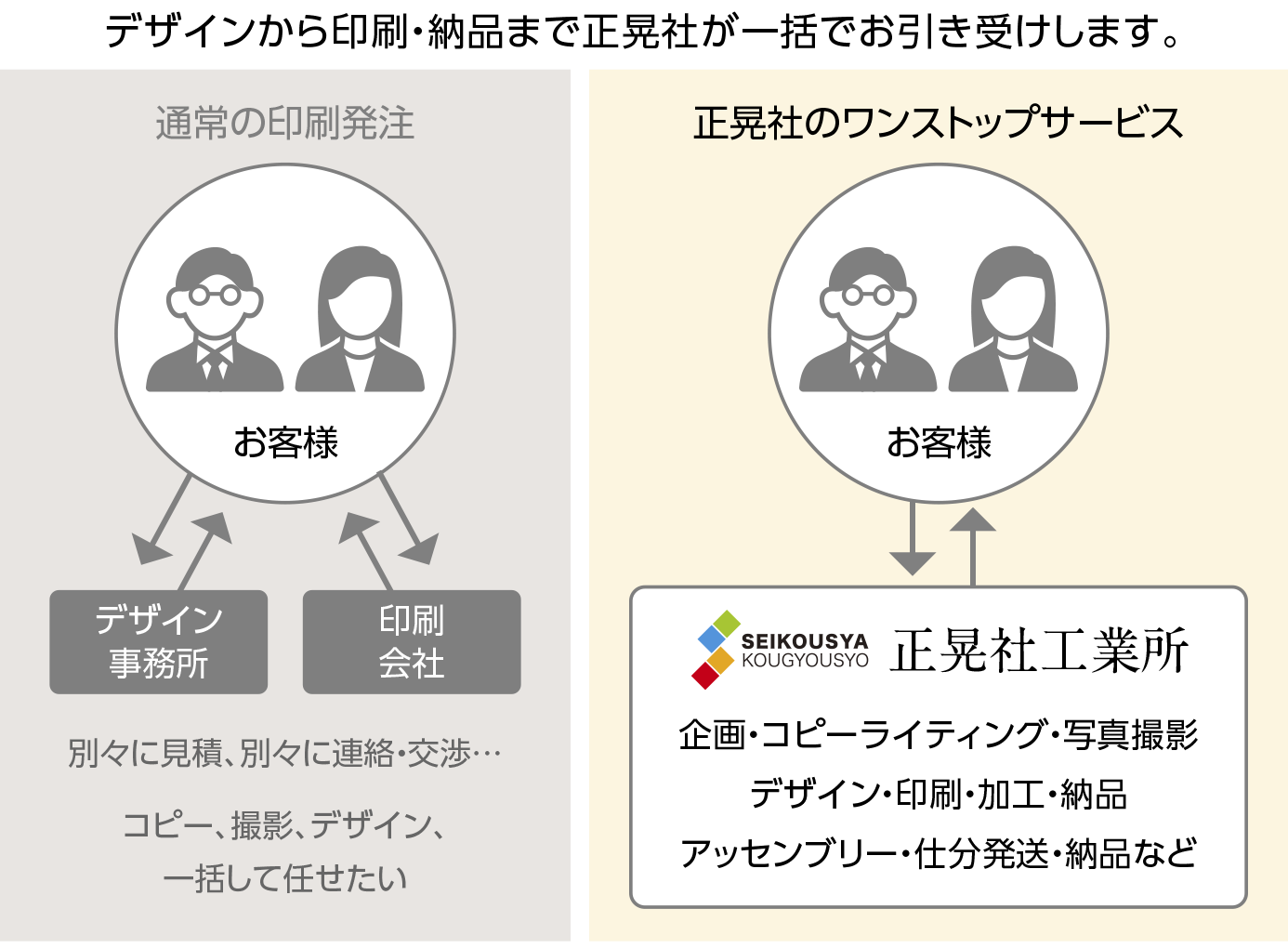 「デザイン会社にツテがない」「デザイナーと印刷会社、両方に交渉する手間が面倒」「今のデザインを一新したい」など、デザイン関連のお悩みはありませんか?